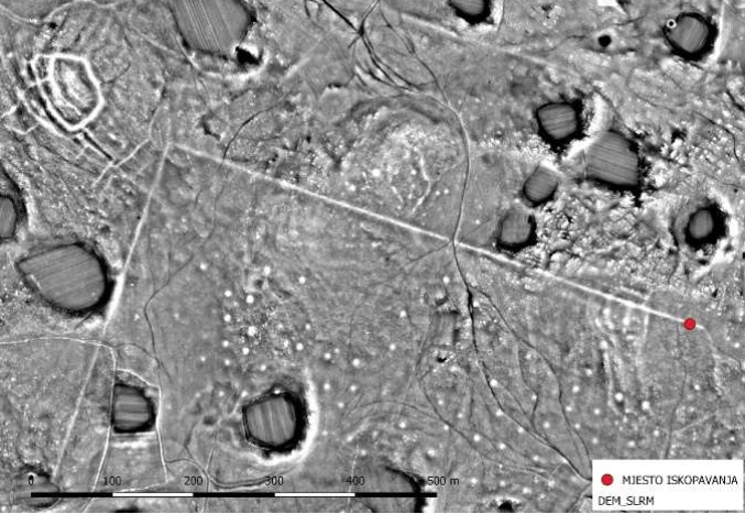 Bedemi ovog dosad nepoznatog nalazišta (nazvanog prema toponimu ucrtanom na topografskoj karti) uočeni su na LiDAR-u te je lokacija prvi put posjećena u siječnju 2018. Nalazište je smješteno sjeverozapadno od mjesta Kloštar, na uzvisini koju zasad ne prekriva gusta šuma već trava i nisko žbunje. U proljetnoj kampanji od vegetacije je očišćen prostor u dužini od oko 20 metara. Na samoj površini pronađeno je nekoliko ulomaka keramike koji bi mogli biti istovjetni onima pronađenim istraživajući ostatke centurijacije. Probna sonda postavljena je u unutrašnjosti gradine na gornjem platou, uz očišćeni dio bedema. Budući da se na središnjem dijelu platoa na površini uočava matična stijena zaključeno je da postoji mogućnost da je uz bedem bolje očuvana stratigrafija. Određena je sonda veličine 3x2 m na mjestu bedema gdje su očiti blokovi koji čine njegovo vanjsko lice. Sloj 3 činila je crvenkastosmeđa zemlja u kojoj je pronađeno dosta ulomaka brončanodobne keramike. Škrape su bile zapunjene malo tamnijom zemljom – SJ4 – u kojoj se nalazila najveća koncentracija keramičkog materijala. Pronađena je, između ostalog i jedna noga tronošca s rupom, tipičnog za brončano doba.