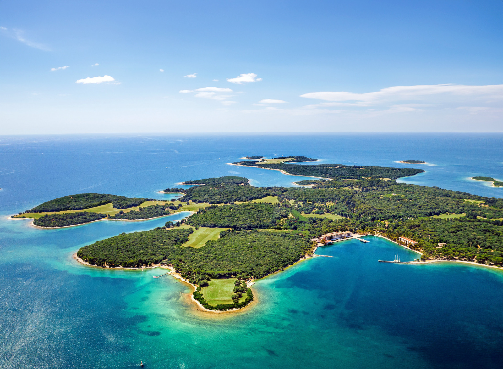 Brijuni National Park can be reached by boat from Fažana, according to the attached timetable: https://www.np-brijuni.hr/en/plan-your-visit/useful-information/boat-schedule/boat-schedule-for-veliki-brijun