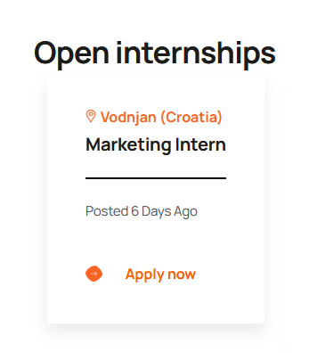 Trenutno su otvorene dvije pozicije u Vodnjanu, jedna je Marketing Intern pozicija i druga ona za Employee Administration.