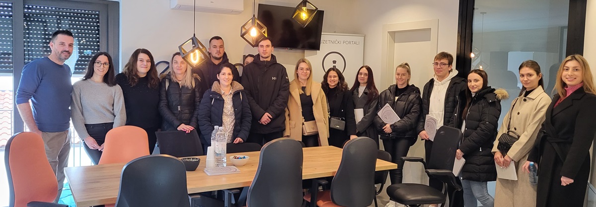 Studenti su svoja znanja iz područja digitalnog marketinga nadogradili posjetom marketinškoj agenciji eStudio, kreatore vodećeg istarskog poduzetničkog portala eIstra.info. Upoznali su se sa poduzetničkom pričom ove agencije, aktivnostima koje ona pruža svojim klijentima, specifičnosti prodaje poslovnim (B2B) korisnicima kao i potrebama malih i srednjih poduzeća u vidu online prisustva. U prijateljskoj atmosferi, predstavnici agencije podijelili su svoje vrijedno iskustvo i znanje sa studentima te odgovorili na brojna pitanja koja su im uputili studenti. Saznajte više o posjeti.