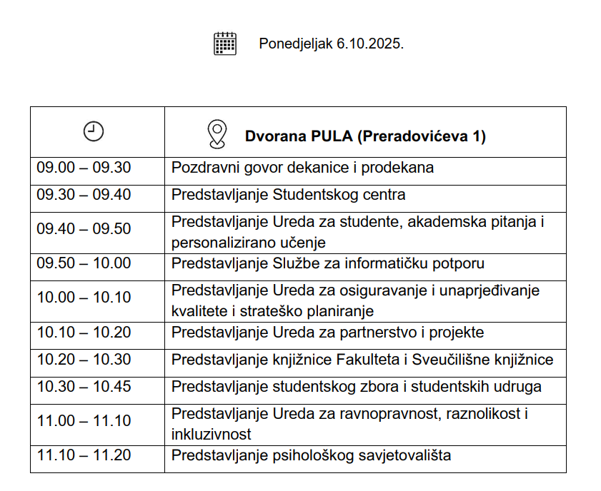 Dragi brucoši i brucošice, pozivamo vas na Orijentacijski dan u ponedjeljak, 6. listopada 2025., s početkom u 9.00 sati.