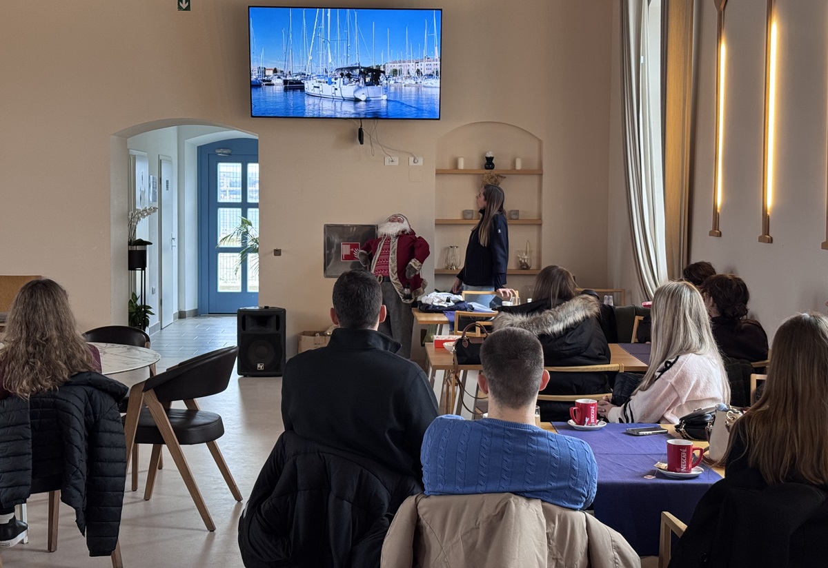 Dana 24. studenoga 2025. održana je terenska nastava za studente 3. godine prijediplomskog i 1. godine diplomskog studija Marketing. U pratnji vanjske suradnice Tijane Pavelić Brkić studenti su posjetili Croatia Sailing Academy u Marini Polesana. Proširili su svoja znanja o nautičkom turizmu, komunikacijskim aktivnostima kao i specifičnostima poslovanja u turističkom i nautičkom sektoru. Unatoč oblačnom i vjetrovitom vremenu, isplovili su na jahti i okušali se u plovidbi. Saznajte više detalja u nastavku.