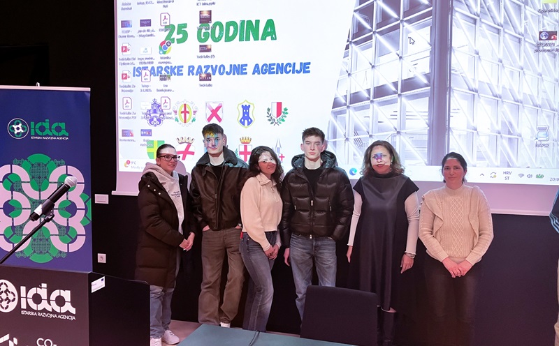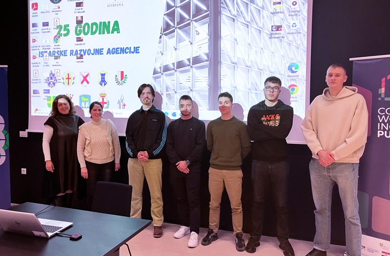 Pobjednički tim – rješenje za lokalnu zajednicu: Vanja Peteh, Matija Gržinić, Vito Šehanović, Tibor Tomić, Lorens Divjak uz profesoricu dr. sc. Danijelu Križman i asistenticu Saru Maga