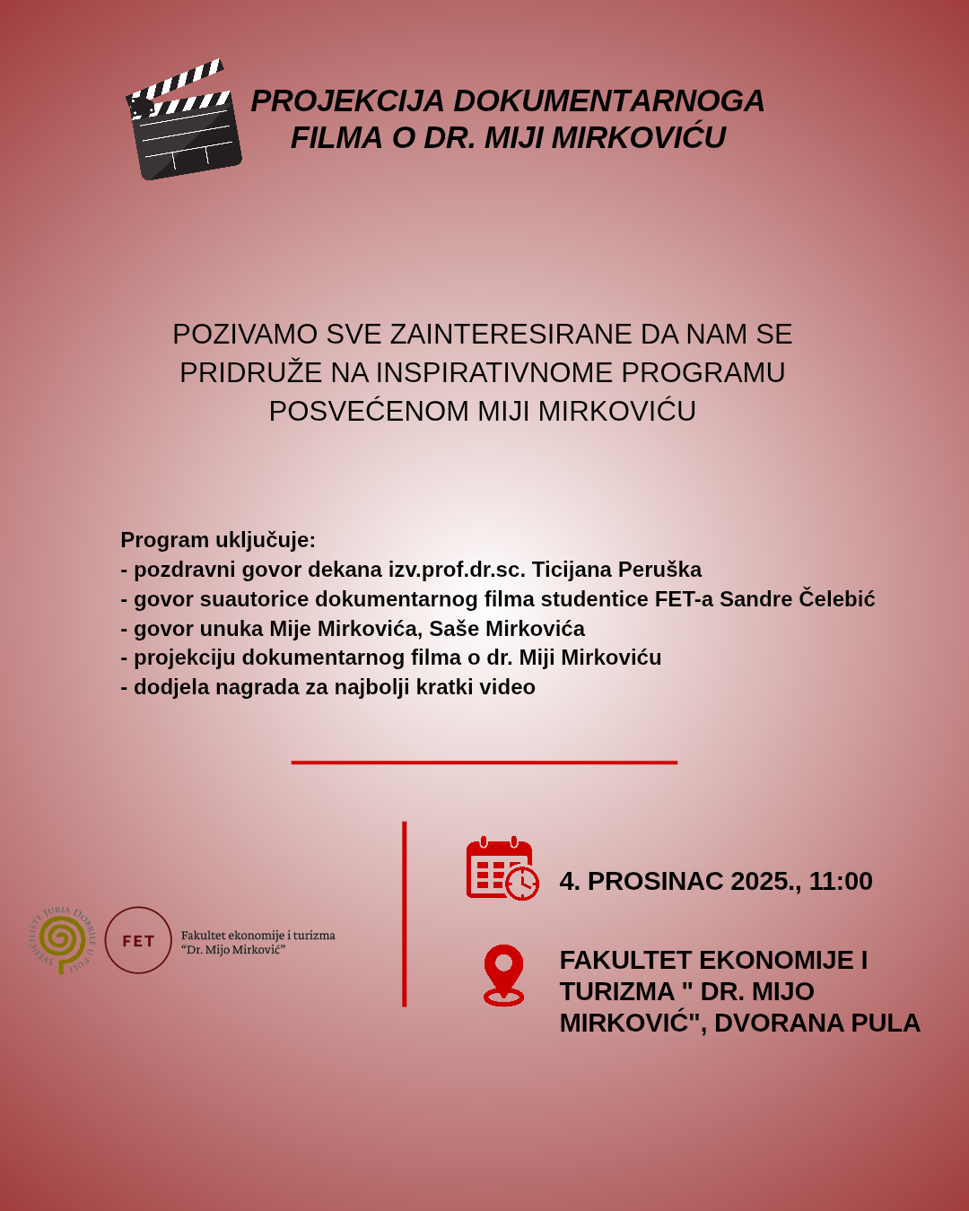 Događaj se održava 4. prosinca 2025. u 11.00 sati u dvorani Pula (FET).