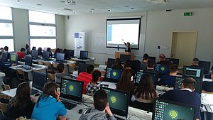 U dvorani Fakulteta ekonomije i turizma „Dr. Mijo Mirković“ u Puli održana je prva radionica za prvu grupu sudionika u sklopu programa Katalog poduzetničkih ideja koji se provodi u okviru SMART INNO projekta. U uvodnoj riječi prodekan izv.prof. dr. sc. Robert Zenzerović učenicima je poželio toplu dobrodošlicu. Radionicu je održala Katarina Kostelić, stručna suradnica za istraživanje na SMART INNO projektu i nastavnica ekonomske skupine predmeta u Školi za turizam, ugostiteljstvo i trgovinu Pula.