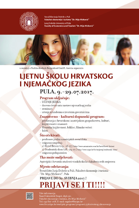 Sveučilište Jurja Dobrile u Puli, Fakultet ekonomije i turizma „Dr. Mijo Mirković“, u suradnji s Fachhochschule Burgenland GmbH, Austrija, i ove godine organizira Ljetnu školu hrvatskog i njemačkog jezika.