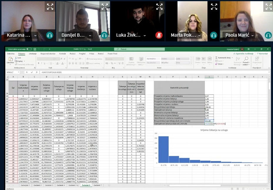 U sklopu kolegija Kvantitativne metode poslovnog odlučivanja 2, studenti 2. godine diplomskog studija na smjeru Informatički menadžment primijenili su Monte Carlo simulaciju čekanja u redu na primjeru po vlastitom izboru.