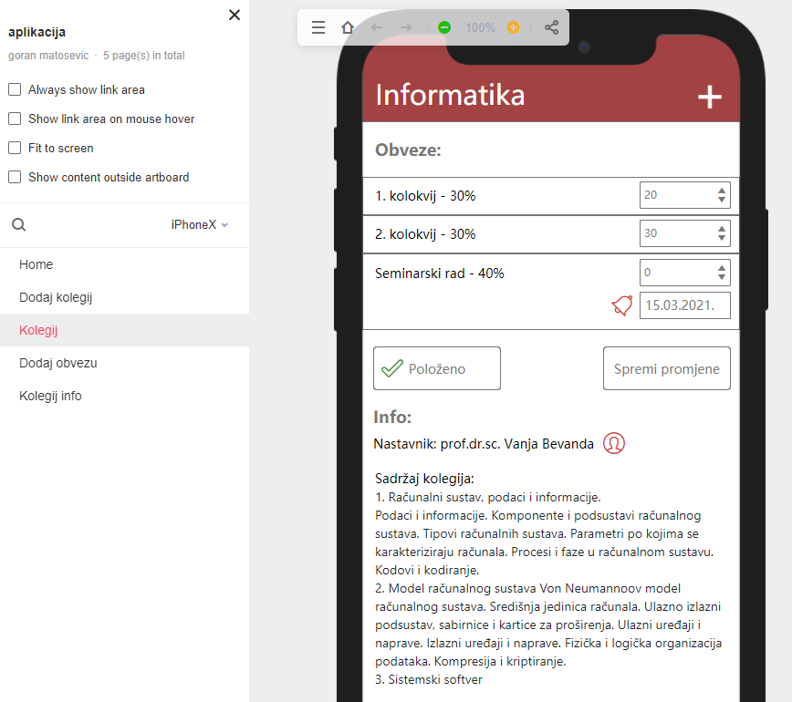Izrada prototipa pomoću online alata jednostavna je i intuitivna te se u ovoj fazi može postaviti navigacija i dobiti uvid u izgled i ponašanje aplikacije na određenim uređajima (bez programiranja):