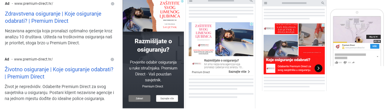 Također, veliko hvala poduzeću Premium Direct na pruženoj prilici te stečenom znanju i iskustvu. Osim što sam se upoznala sa onim što studiram u praksi, upoznala sam i novu djelatnost. Savjetnika u osiguranju. Osobno nisam znala da postoji savjetnik u osiguranju (nezavisna agencija koja surađuje sa nekoliko osiguravajućih kuća te Vam pomaže pronaći optimalno rješenje za vaše individualne potrebe) jer do sada nisam imala potrebu niti priliku istraživati osiguranja stoga mi je drago da sam sada saznala tu informaciju jer će mi sigurno biti korisna u budućnosti. Imala sam priliku staviti se u poziciju njihovog klijenta, pokušati razmišljati kao njihov klijent, a istovremeno kao marketer koji im se nastoji približiti kako bi što bolje osmislila i dizajnirala oglase koji bi privukli nove klijente. Zaista jedno korisno i divno iskustvo u kojem sam puno naučila i koje mi je dosta koristilo.